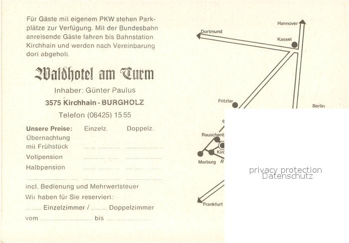 73648567 Burgholz Kirchhain Waldhotel am Turm Speisesaal Gaststube Kegelbahn postalisch nicht gelaufen Werbekarte (keine Postkarte) Erhaltung siehe scans [WerneD78] KatCode: 11110006534011