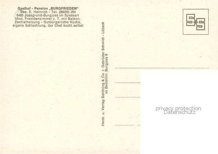 73863286 Burgjoss Gasthof Pension Burgfrieden postalisch nicht gelaufen Erhaltung siehe scans [FriedD77] KatCode: 11110006435016