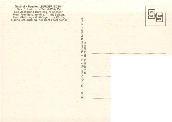 73896361 Burgjoss Jossgrund Gasthof Pension Burgfrieden Restaurant postalisch nicht gelaufen Erhaltung siehe scans [FriedD77] KatCode: 11110006435016