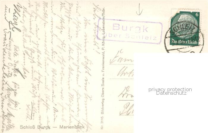 73770948 alte Postkarte Burgk Saale-Orla-Kreis Schloss Burgk Marienblick postalisch gelaufen Erhaltung siehe scans [WerneD78] KatCode: 11110016075009