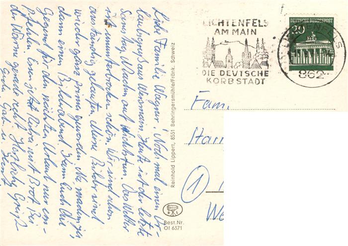 73924628 alte Postkarte Burgkunstadt Kath Kirche Marktplatz Schwimmbad Rathaus Ev Kirche postalisch gelaufen Erhaltung siehe scans [FriedD77] KatCode: 11110009478116