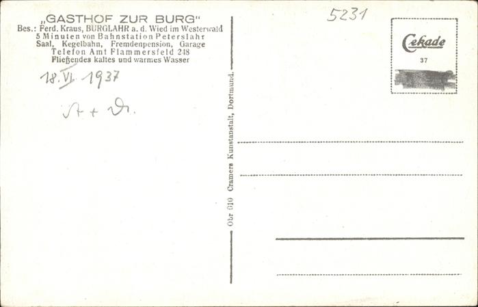 41312580 Burglahr Gasthof zur Burg Kraus postalisch nicht gelaufen Alte Ansichtskarte Postkarte hz_L Katcode 11110007132016