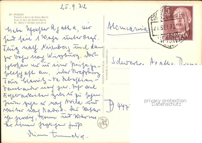old postcard Burgos Puente y Arco de Santa Maria postalisch gelaufen Erhaltung siehe scans [LiesaD40]