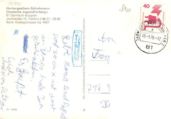 73882883 alte Postkarte Burgrain Garmisch-Partenkirchen Herbergseltern Schuhmann Deutsche Jugendherberge postalisch gelaufen Erhaltung siehe scans [WerneD78] KatCode: 11110009180117