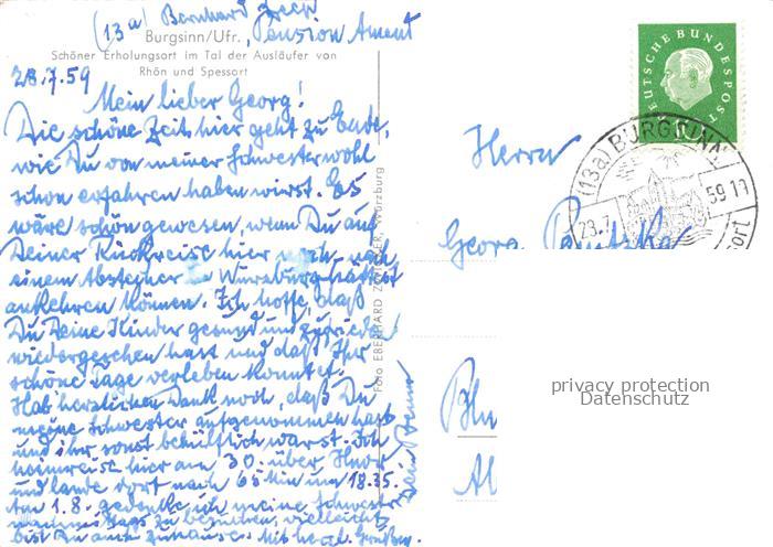 74023505 alte Postkarte Burgsinn Park Wasserturm Schwimmbad postalisch gelaufen Erhaltung siehe scans [WerneD78] KatCode: 11110009677122
