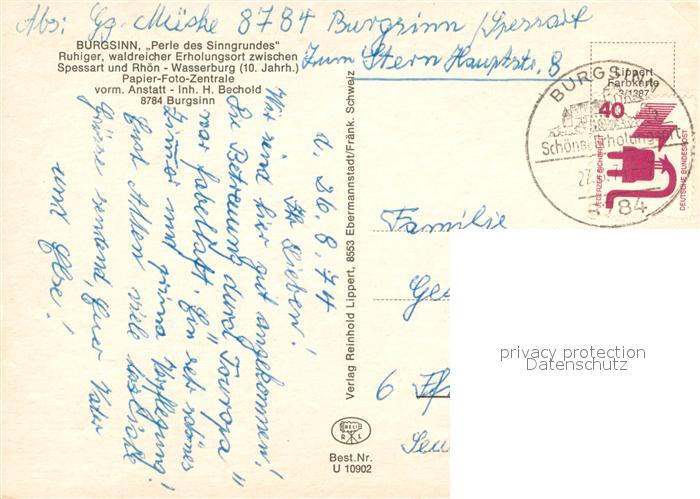 73168142 alte Postkarte Burgsinn Wasserburg Neues Schloss Frohnhofer Schloesschen postalisch gelaufen Erhaltung siehe scans [KathaD81] KatCode: 11110009677122