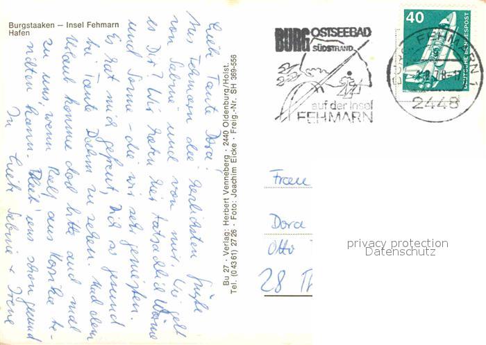72872276 alte Postkarte Burgstaaken Hafen Fliegeraufnahme postalisch gelaufen Erhaltung siehe scans [FriedD77] KatCode: 11110001055046