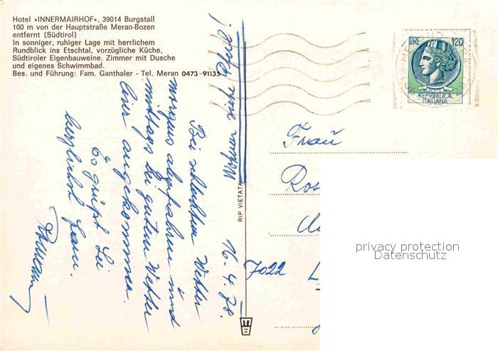 72665728 alte Postkarte Burgstall Mayrhofen Hotel Innermairhof postalisch gelaufen Erhaltung siehe scans [LiesaD40] KatCode: 11390335070920