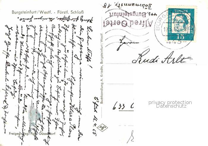 72708567 alte Postkarte Burgsteinfurt Fuerstliches Schloss Fliegeraufnahme postalisch gelaufen Erhaltung siehe scans [FriedD77] KatCode: 11110005566084