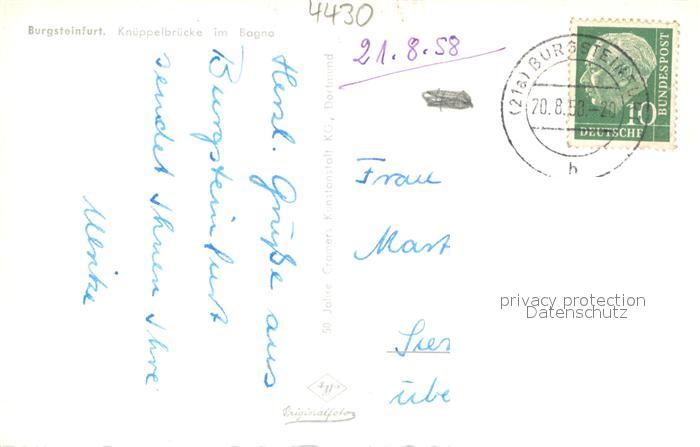 73697945 alte Postkarte Burgsteinfurt Knueppelbruecke im Bagno postalisch gelaufen Erhaltung siehe scans [LiesaD40] KatCode: 11110005566084