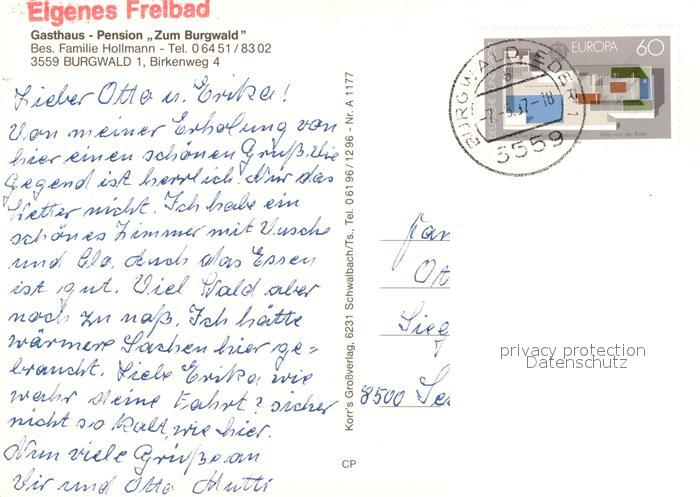 73204140 alte Postkarte Burgwald Eder Gasthaus Zum Burgwald postalisch gelaufen Erhaltung siehe scans [NatalD47] KatCode: 11110006635006