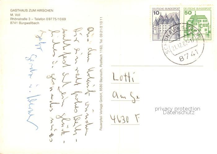 73815583 alte Postkarte Burgwallbach Gasthaus zum Hirschen See Panorama Rhoenpartie postalisch gelaufen Erhaltung siehe scans [FriedD77] KatCode: 11110009673163