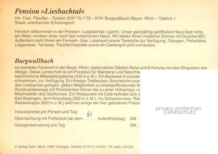 73723264 Burgwallbach Pension Liesbachtal Zimmer Gaststube postalisch nicht gelaufen Werbekarte (keine Postkarte) Erhaltung siehe scans [WerneD78] KatCode: 11110009673163