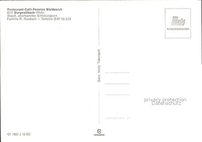 72225897 Burgwallbach Restaurant Cafe Pension Waldesruh postalisch nicht gelaufen Erhaltung siehe scans KatCode: 11110009673163