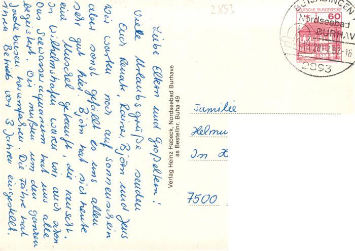 73933674 Burhave Nordseebad Fliegeraufnahme Bungalows Kirche Inselhaus postalisch gelaufen Erhaltung siehe scans [FriedD77] alte Postkarte Frie Katcode 11110003461003