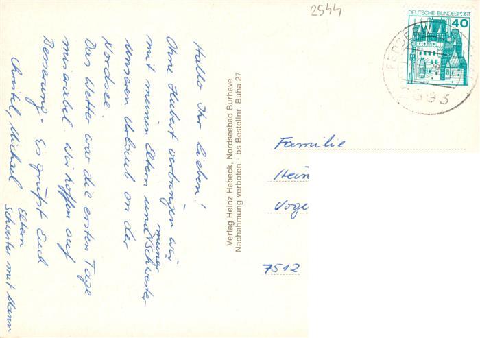 73930203 Burhave Nordseebad Strand Kirche Camping Kutterhafen Kanal Strassenpartie Bungalow Gebietskarte postalisch gelaufen Erhaltung siehe scans [WerneD78] alte Postkarte Wern Katcode 11110003461003