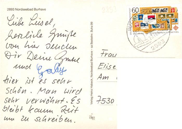 73931010 Burhave Nordseebad Strandpartie Kirche Bungalowsiedlung Promenade postalisch gelaufen Erhaltung siehe scans [WerneD78] alte Postkarte Wern Katcode 11110003461003