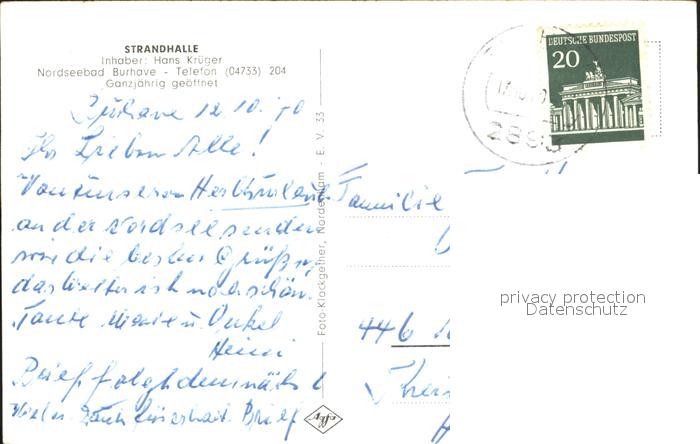 72274962 alte Postkarte Burhave Strandhalle postalisch gelaufen Erhaltung siehe scans KatCode: 11110003461003
