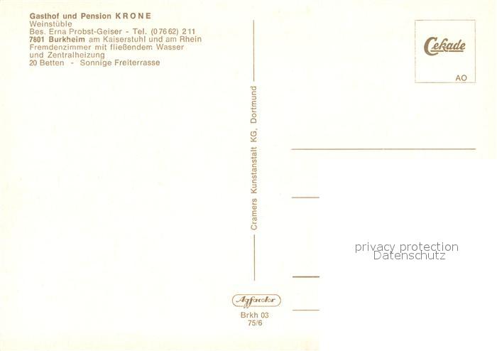73651832 Burkheim Kaiserstuhl Gasthof Pension Krone Restaurant Terrasse postalisch nicht gelaufen Erhaltung siehe scans [FriedD77] KatCode: 11110008315133