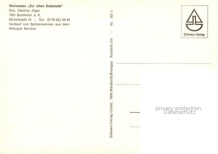 73080968 Burkheim Kaiserstuhl Weinstube Zur alten Schmiede postalisch nicht gelaufen Erhaltung siehe scans [LiesaD40] KatCode: 11110008315133