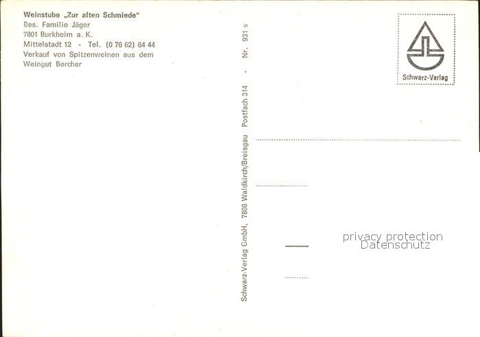 72231133 Burkheim Kaiserstuhl Weinstube Zur alten Schmiede postalisch nicht gelaufen Erhaltung siehe scans KatCode: 11110008315133