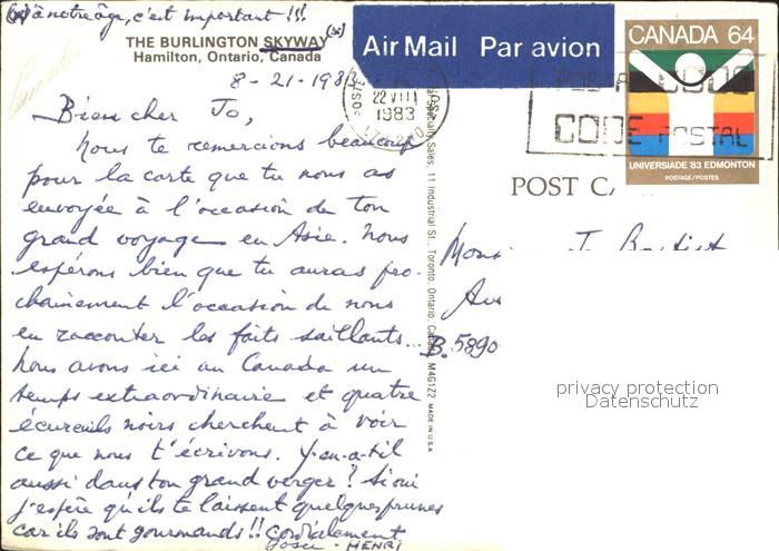 old postcard Burlington Ontario Fliegeraufnahme Hamilton postalisch gelaufen Erhaltung siehe scans