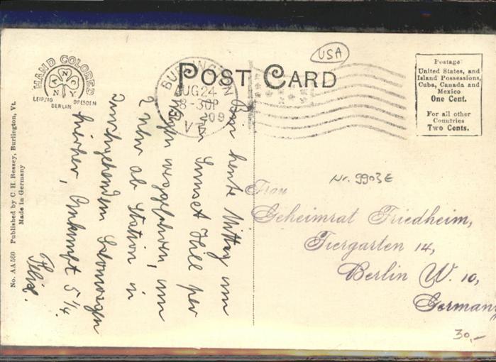 11032091 old postcard Burlington Vermont St Paul Street Kutsche postalisch gelaufen KatCode: 14140480000000
