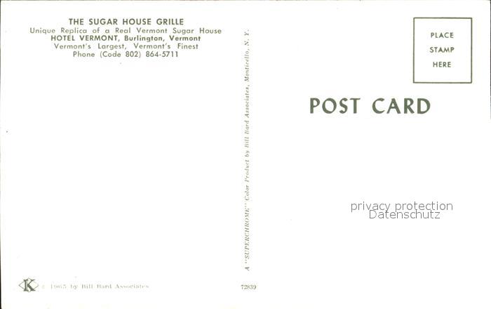 72282091 Burlington Vermont Sugar House Grille postalisch nicht gelaufen Erhaltung siehe scans KatCode: 14140480000000