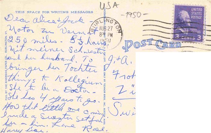73973354 old postcard Burlington Vermont USA Buildings Illustration postalisch gelaufen Erhaltung siehe scans [FriedD77] KatCode: 14140480000000