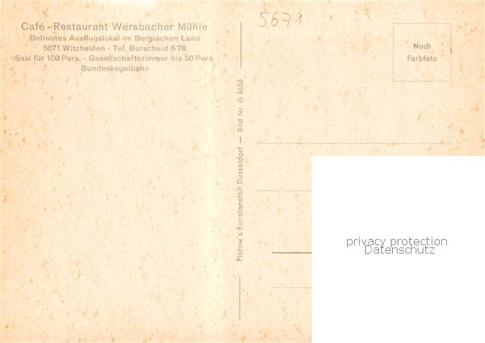 73863119 Burscheid Cafe Restaurant Wersbacher Muehle postalisch nicht gelaufen Erhaltung siehe scans [WerneD78] KatCode: 11110005378008