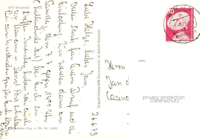 73813378 alte Postkarte Burscheid Fliegeraufnahme postalisch gelaufen Erhaltung siehe scans [WerneD78] KatCode: 11110005378008