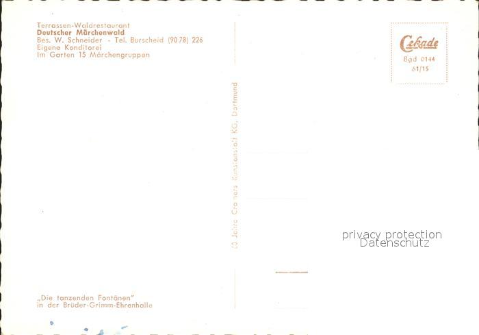 72112690 Burscheid Waldrestaurant Deutscher Maerchenwald postalisch nicht gelaufen Erhaltung siehe scans KatCode: 11110005378008