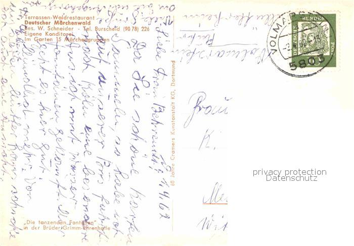 72913723 alte Postkarte Burscheid Waldrestaurant Deutscher Maerchenwald postalisch gelaufen Erhaltung siehe scans [LiesaD40] KatCode: 11110005378008