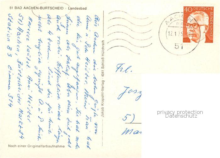 73792837 alte Postkarte Burtscheid Aachen Landesbad postalisch gelaufen Erhaltung siehe scans [WerneD78] KatCode: 11110005313000