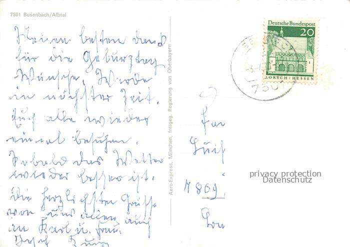 74071218 alte Postkarte Busenbach Albtal Waldbronn BW Fliegeraufnahme postalisch gelaufen Erhaltung siehe scans [FriedD77] KatCode: 11110008215110