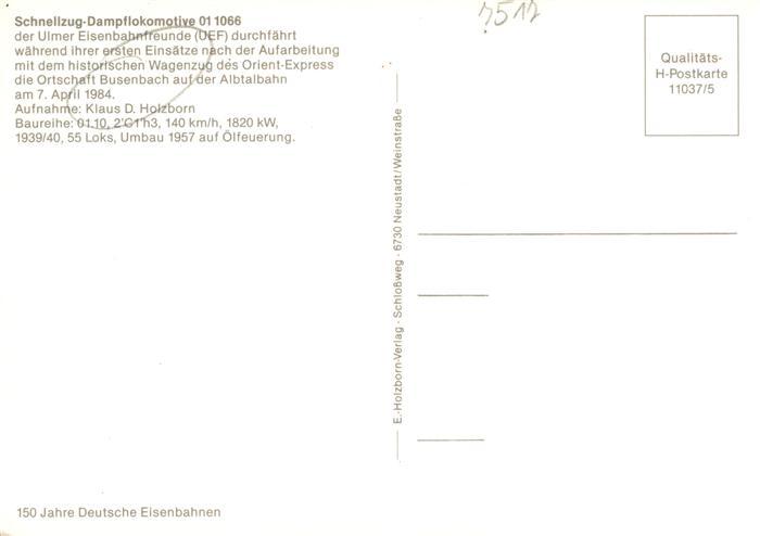 73938312 Busenbach Waldbronn Schnellzug Dampflokomotive 01 1066 postalisch nicht gelaufen Erhaltung siehe scans [WerneD78] KatCode: 11110008215110