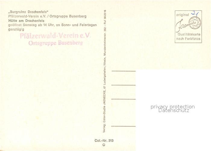 73671724 Busenberg Pfalz Burgruine Drachenfels Huette Panorama postalisch nicht gelaufen Erhaltung siehe scans [WerneD78] KatCode: 11110007340002