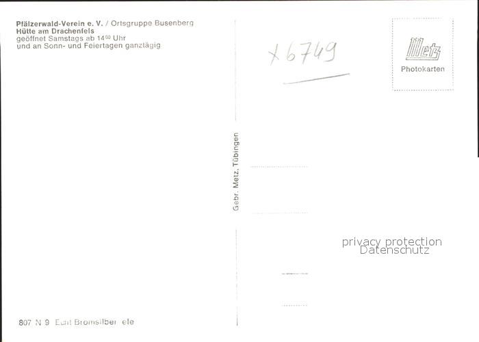 41793356 Busenberg Pfalz Kreuz Ruine Drachenfels Hauptstrasse Eiloechel-Fels postalisch nicht gelaufen Erhaltung siehe scans KatCode: 11110007340002