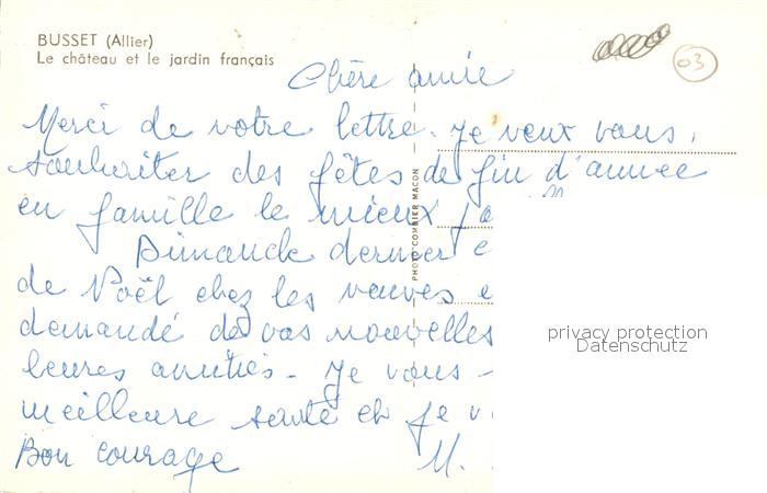 13546630 Busset Chateau et le jardin francais Schloss postalisch nicht gelaufen Erhaltung siehe scans [FriedD77] KatCode: 11170003303045