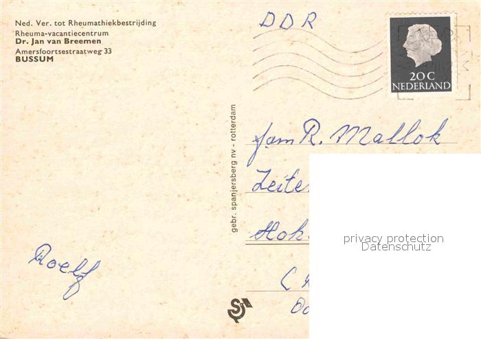 old postcard Bussum Rheumazentrum Doktor Jan van Breemen postalisch gelaufen Erhaltung siehe scans [AndreD76]
