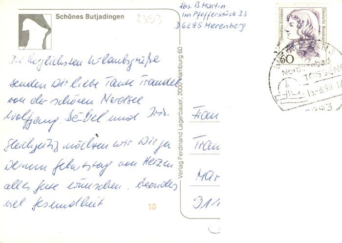73931013 alte Postkarte Butjadingen Ruhwarden Nordenham Stollham Eckwardhoerne Burhave Siel Moorseer Muehle Fedderwardersiel Sehestedt Blexen Seefeld Burhave postalisch gelaufen Erhaltung siehe scans [WerneD78] KatCode: 11110003461003