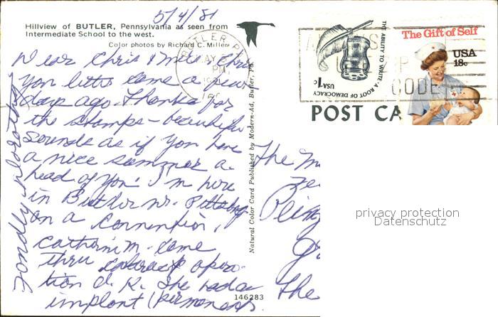 72461726 old postcard Butler Pennsylvania Panorama Tennisplaetze postalisch gelaufen Erhaltung siehe scans KatCode: 14140410000000