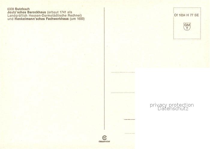 73214186 Butzbach Joutz’sches Barockhaus 18. Jhdt. Henkelmann’sches Fachwerkhaus um 1600 postalisch nicht gelaufen Erhaltung siehe scans [FriedD77] KatCode: 11110006440005