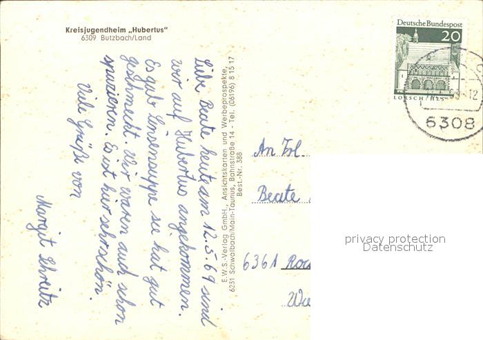 72040219 alte Postkarte Butzbach Kreisjugendheim Hubertus postalisch gelaufen Erhaltung siehe scans KatCode: 11110006440005