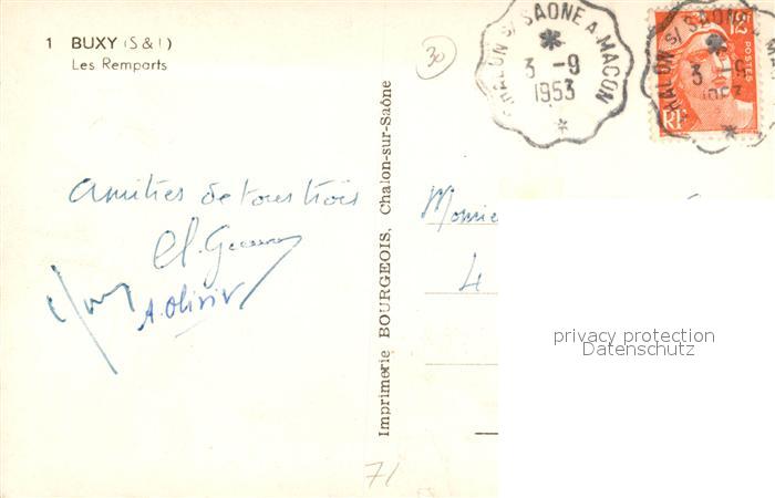 13483097 carte postale Buxy Vue d ensemble et les remparts Eglise postalisch gelaufen Erhaltung siehe scans [FriedD77] KatCode: 11170071271070