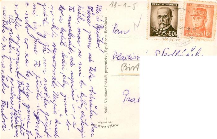 73959721 old postcard Bystrice Benesova Beneschau CZ Teilansichten Kirche Partie am Wasser postalisch gelaufen Erhaltung siehe scans [FriedD77] KatCode: 11520