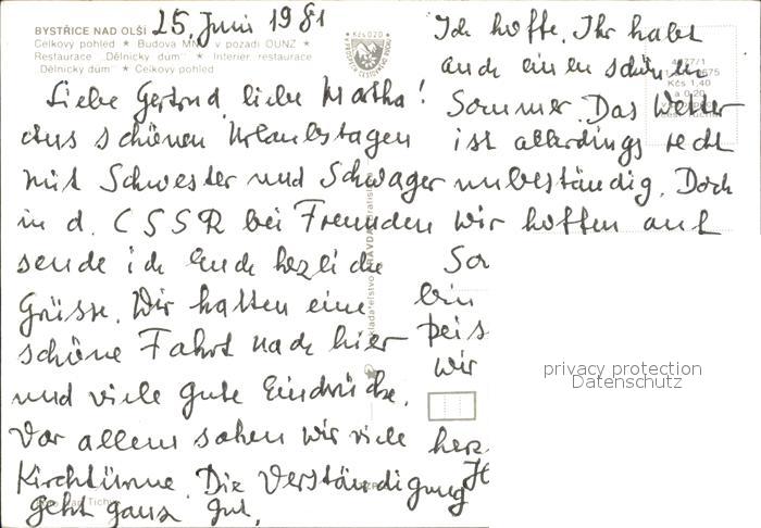 Bystrice nad Olsi Panorama Budova MNV Restaurace Delnicky dum Interier restaurace Teilansicht postalisch nicht gelaufen Erhaltung siehe scans