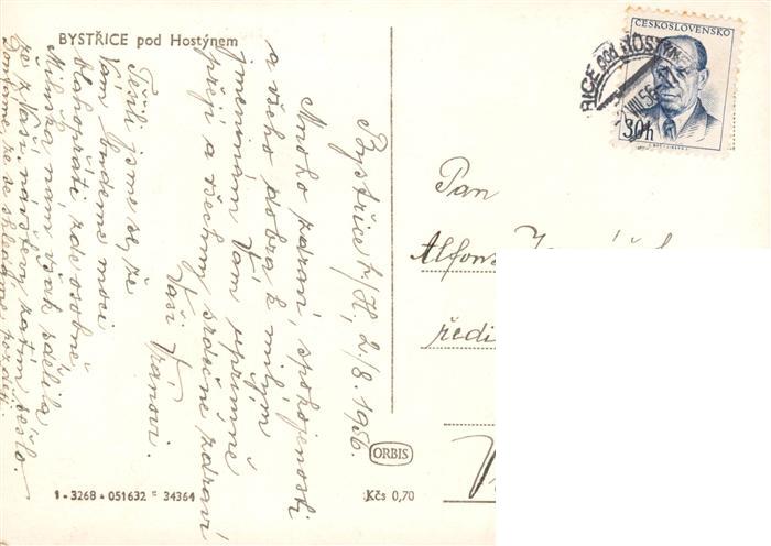 73960286 old postcard Bystrice pod Hostynem Bistritz am Hostein CZ Teilansicht postalisch gelaufen Erhaltung siehe scans [FriedD77] KatCode: 11520