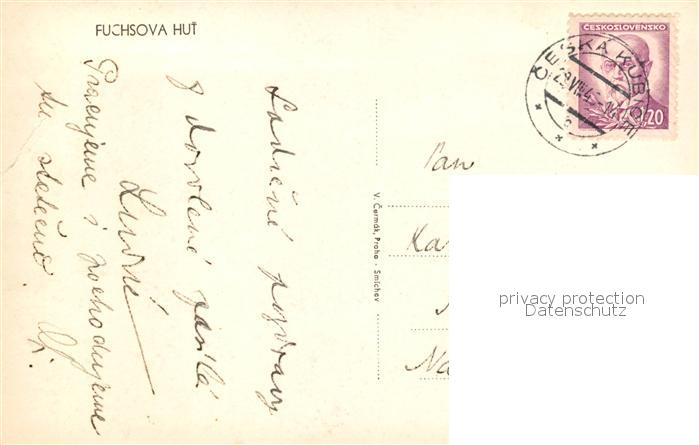 old postcard Bystrice pod Hostynem Fuchsova Hut postalisch gelaufen Erhaltung siehe scans [KathaD81]