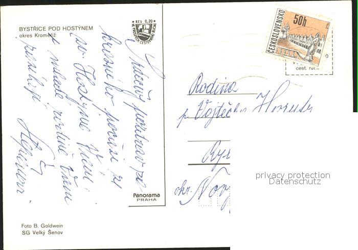 old postcard Bystrice pod Hostynem Kirche Freibad postalisch gelaufen Erhaltung siehe scans